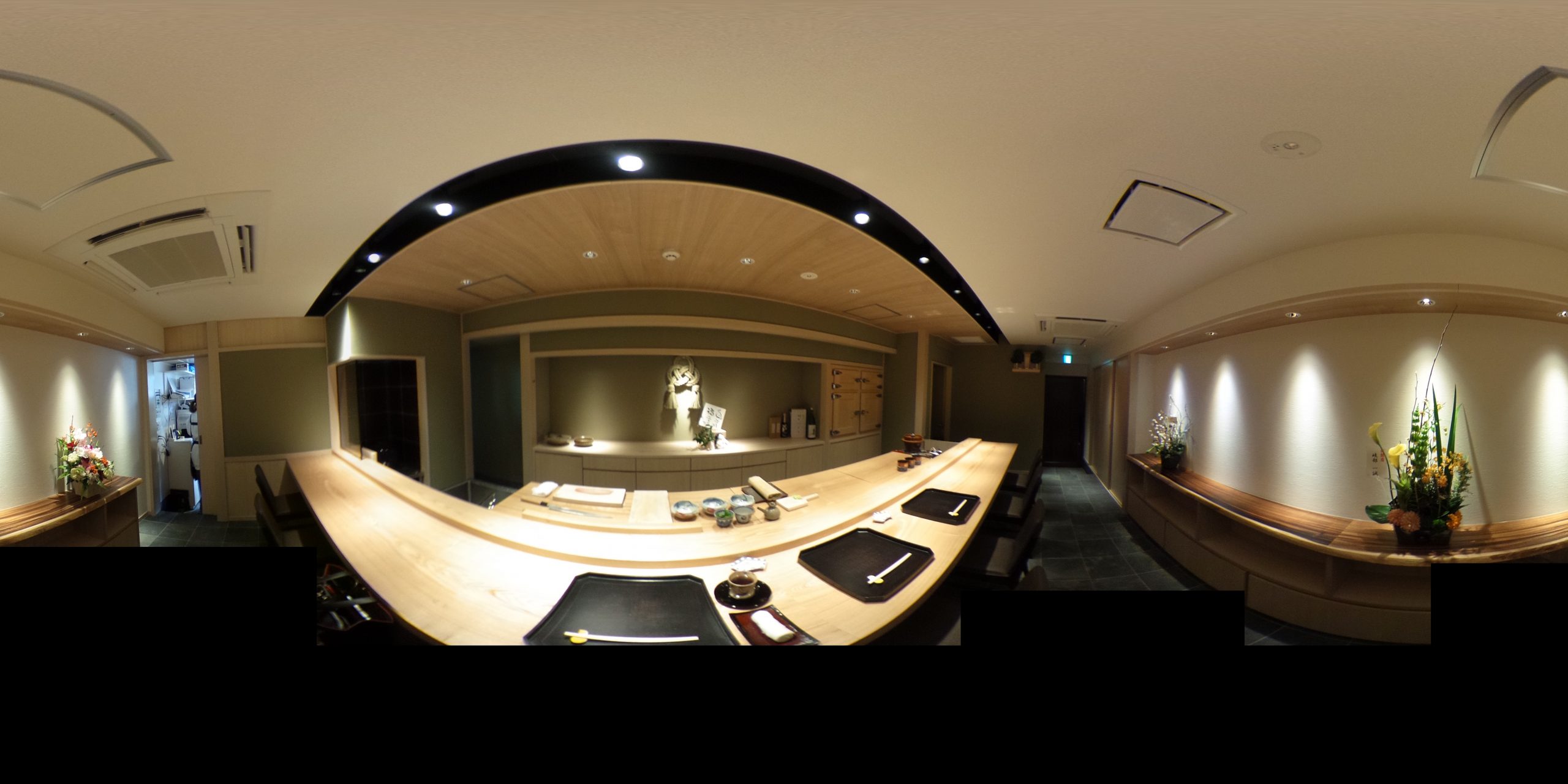 真一文字のカウンター席。