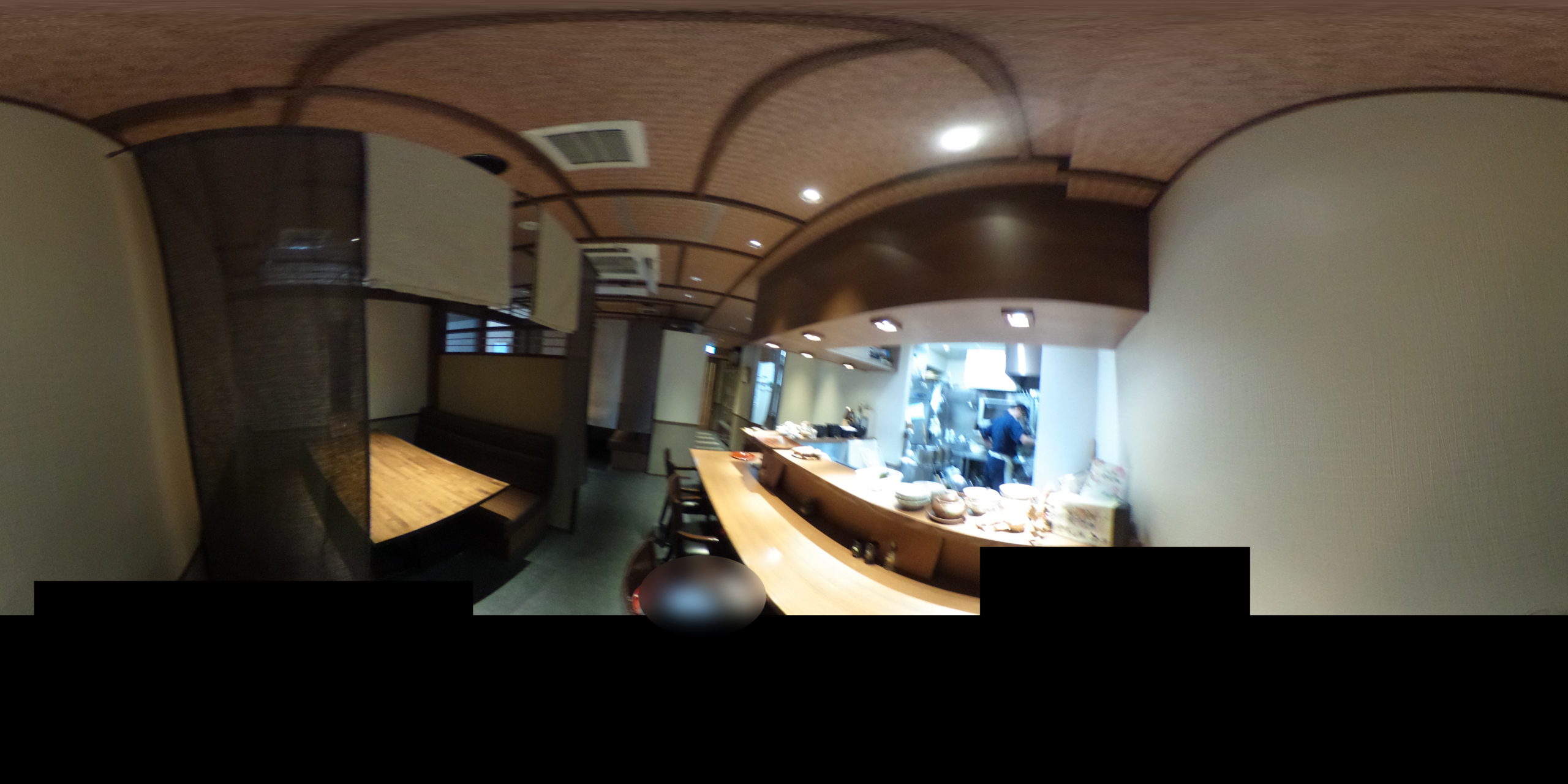 カウンター席に、半個室なテーブル席の店内です。