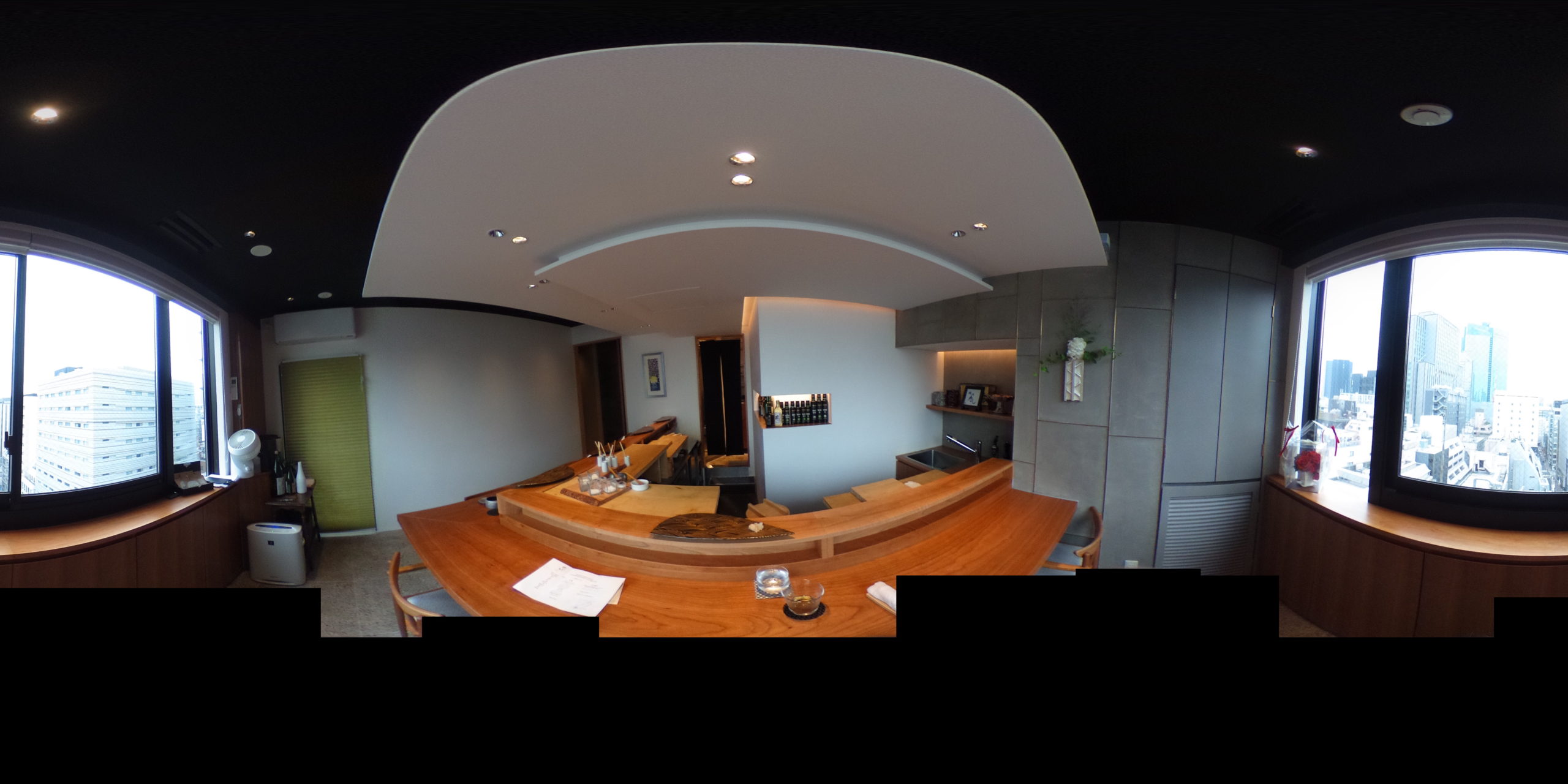L字型のカウンター席。お寿司屋さんに、よくある風景です。