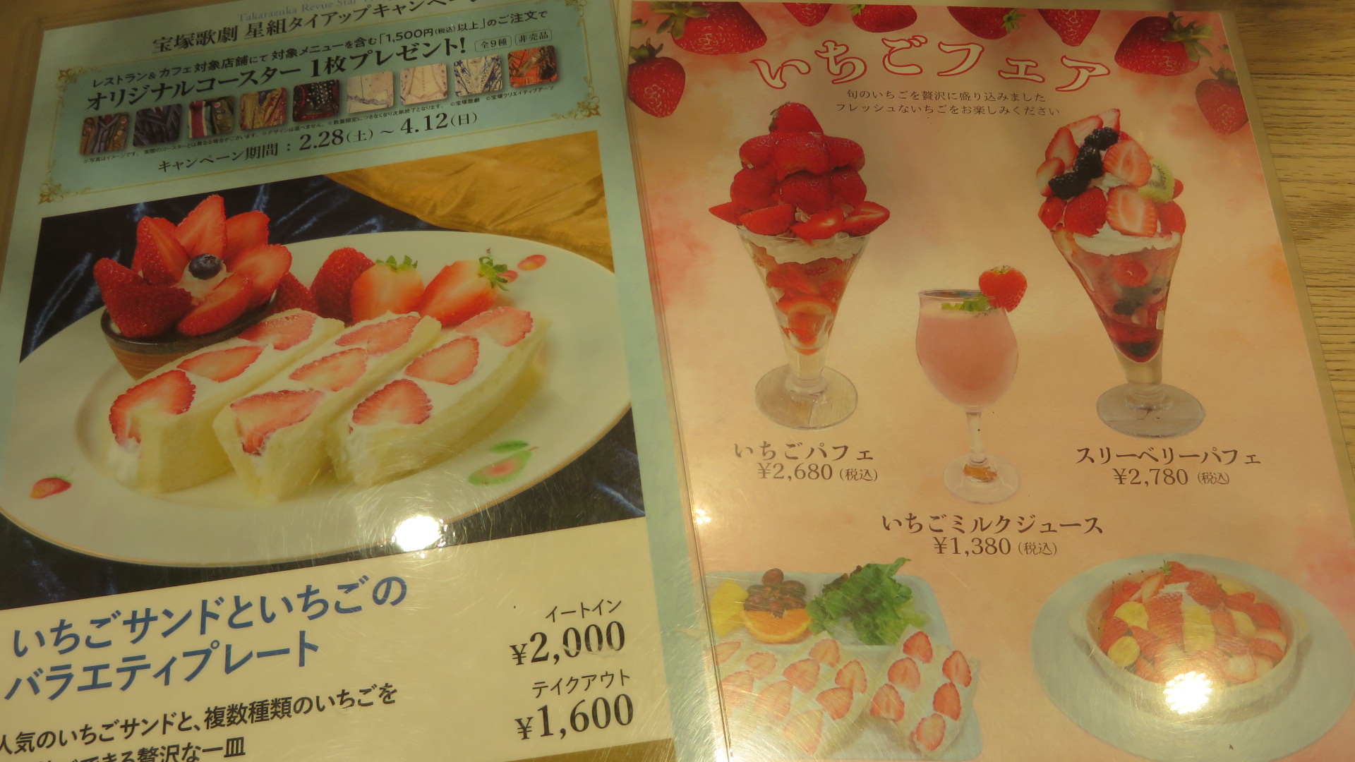 そして、メニューを広げても、やっぱりいちごフェアを開催中。どれもおいしそう。