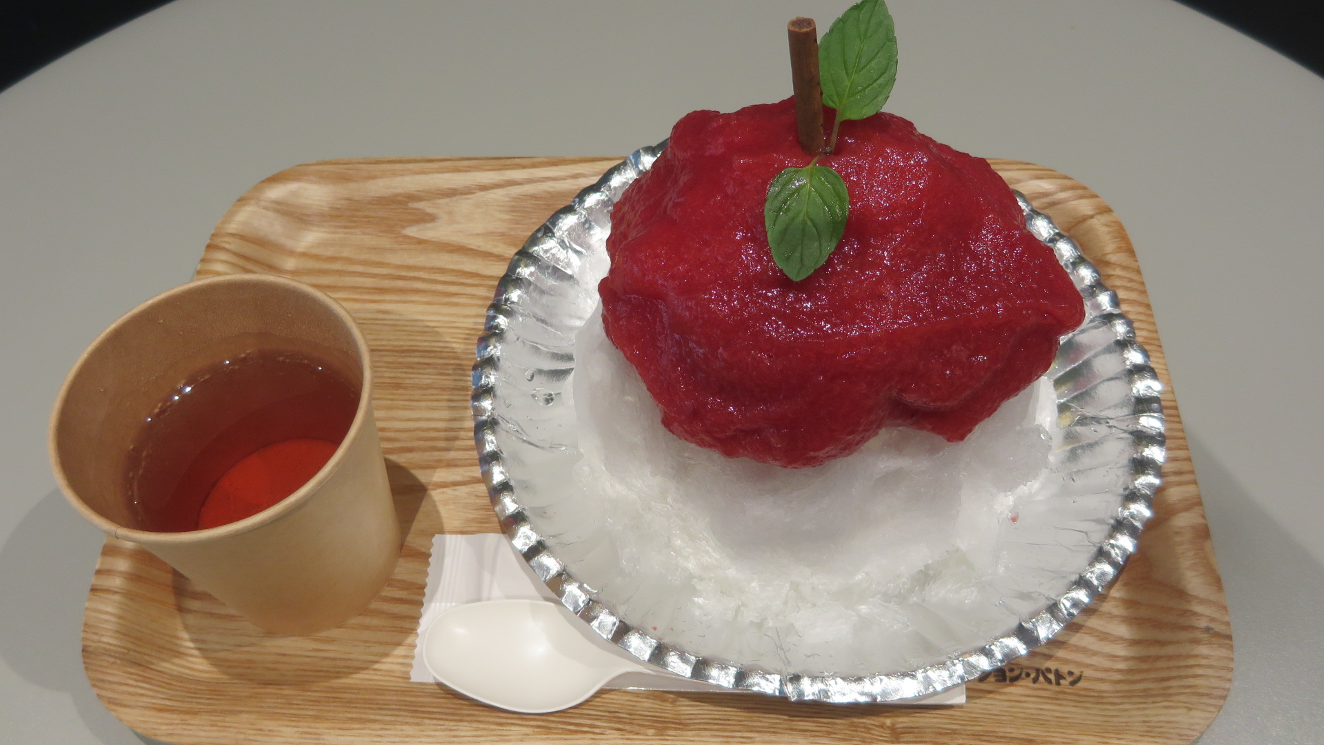ほんのりした甘さのアメリカンチェリー。そして、少しピリっとしたカルダモンを隠し味に加えたかき氷。見た目はシンプルですが、味わい豊かなかき氷です。