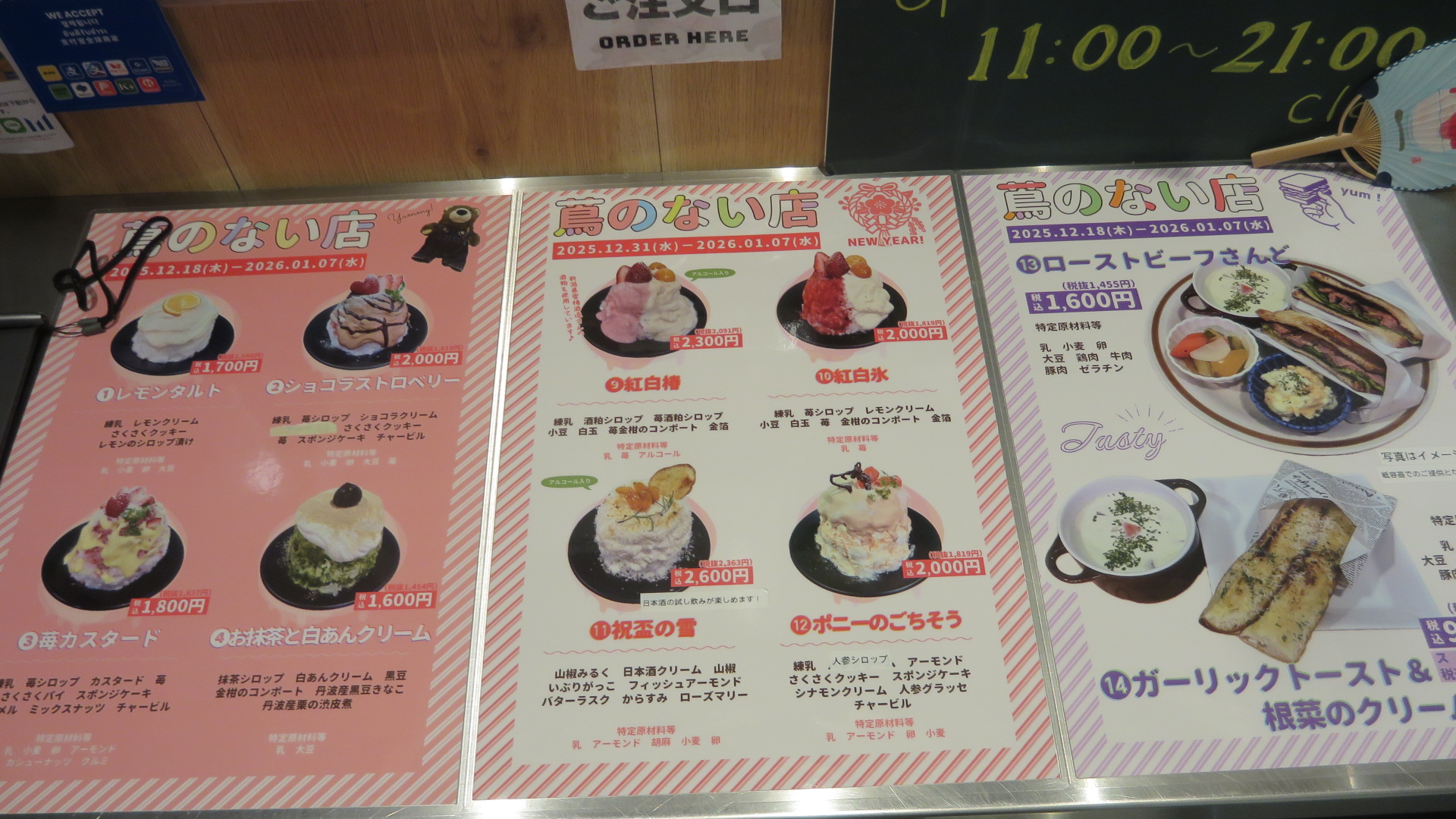 年末には、クリスマス向けのかき氷が用意されていたようですが、1月に入ってからお正月向けのメニューに入れ替えています。
