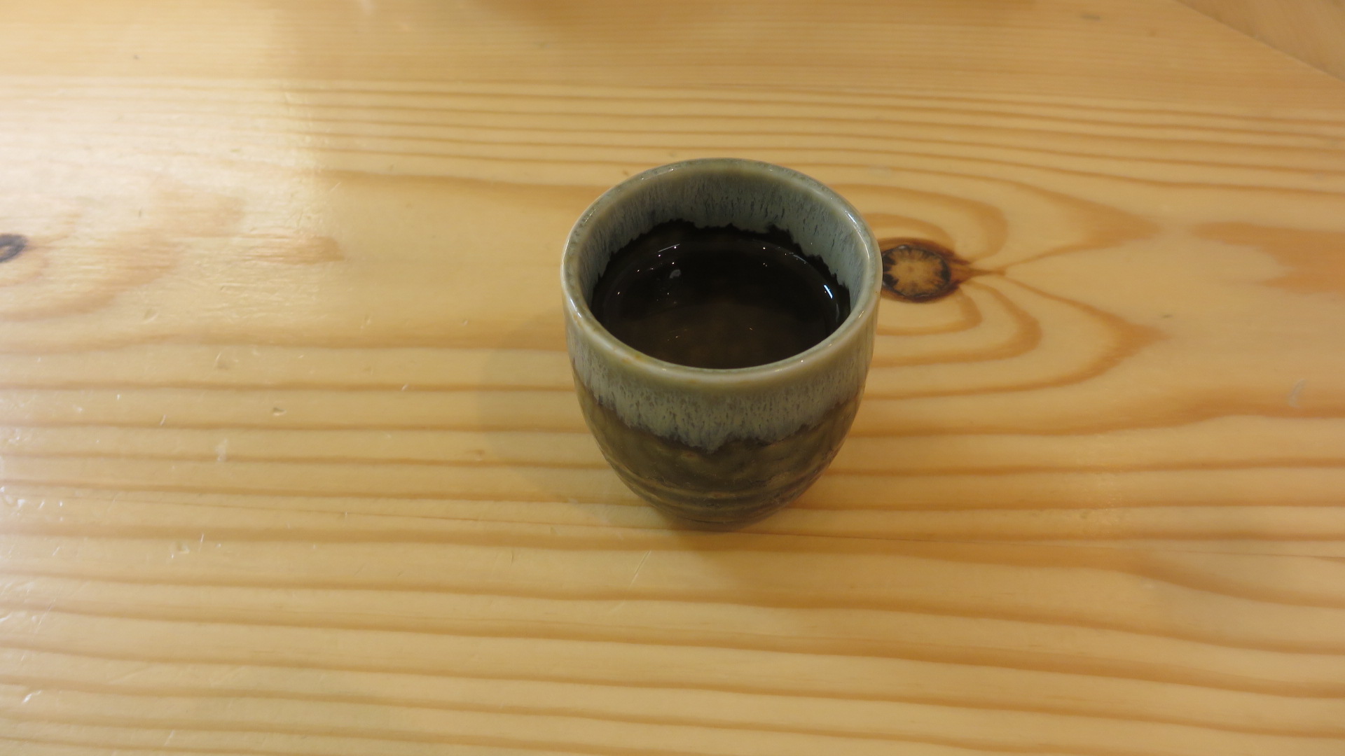 ここのウエルカムドリンクは、おちょこで出汁。おいしいです。