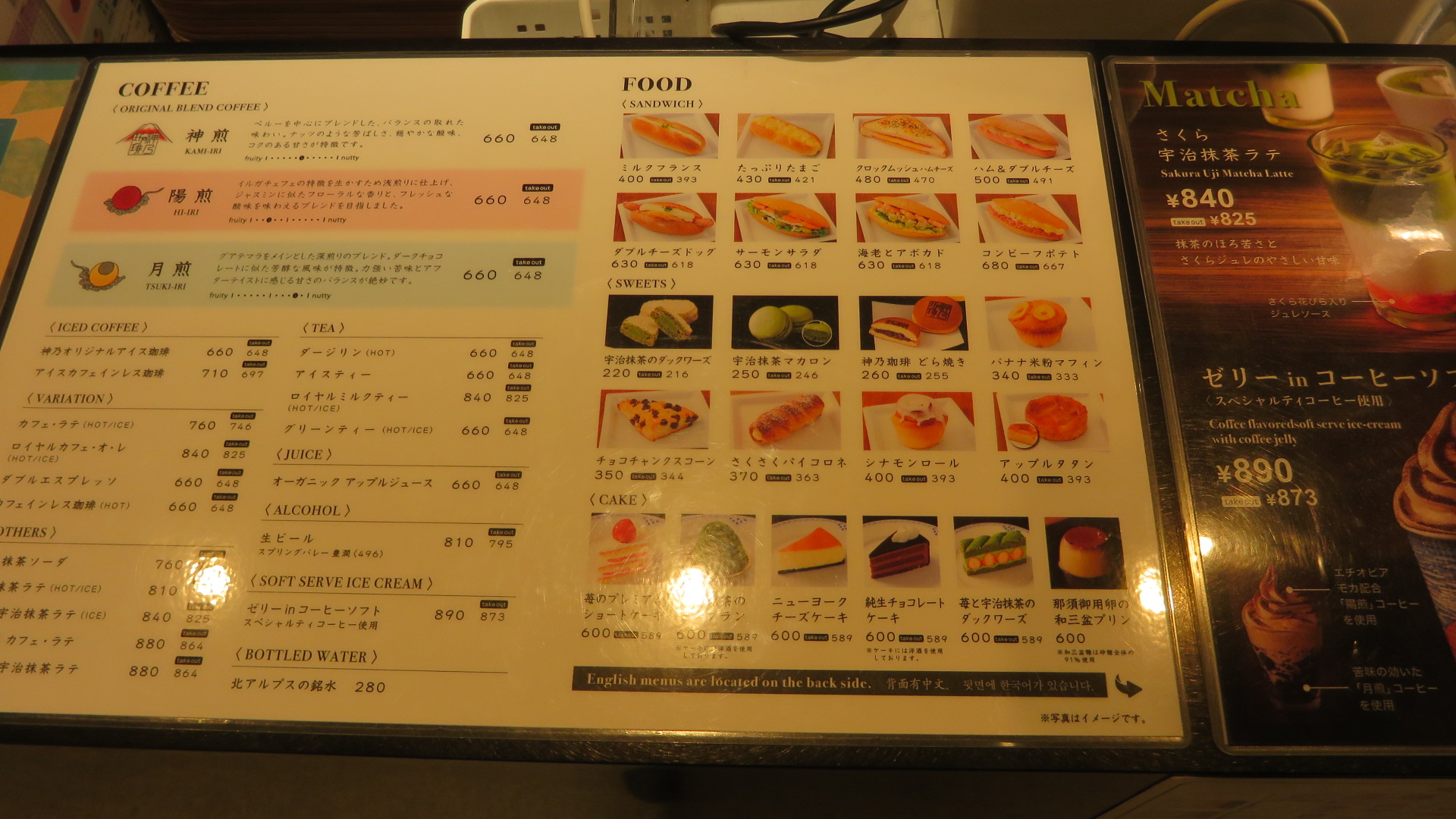 神乃珈琲は、コーヒーの種類は銀座店といっしょながら、こちらのお店の方がだいぶお安くなっています。