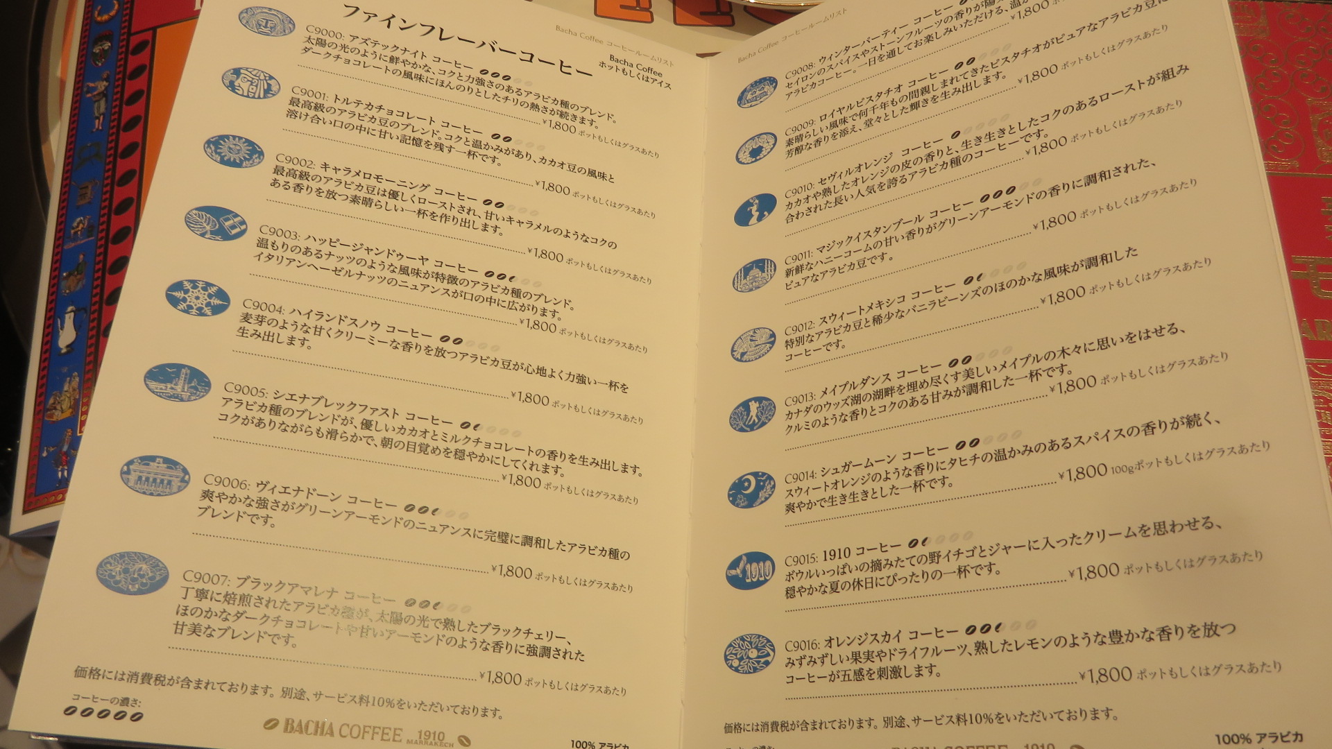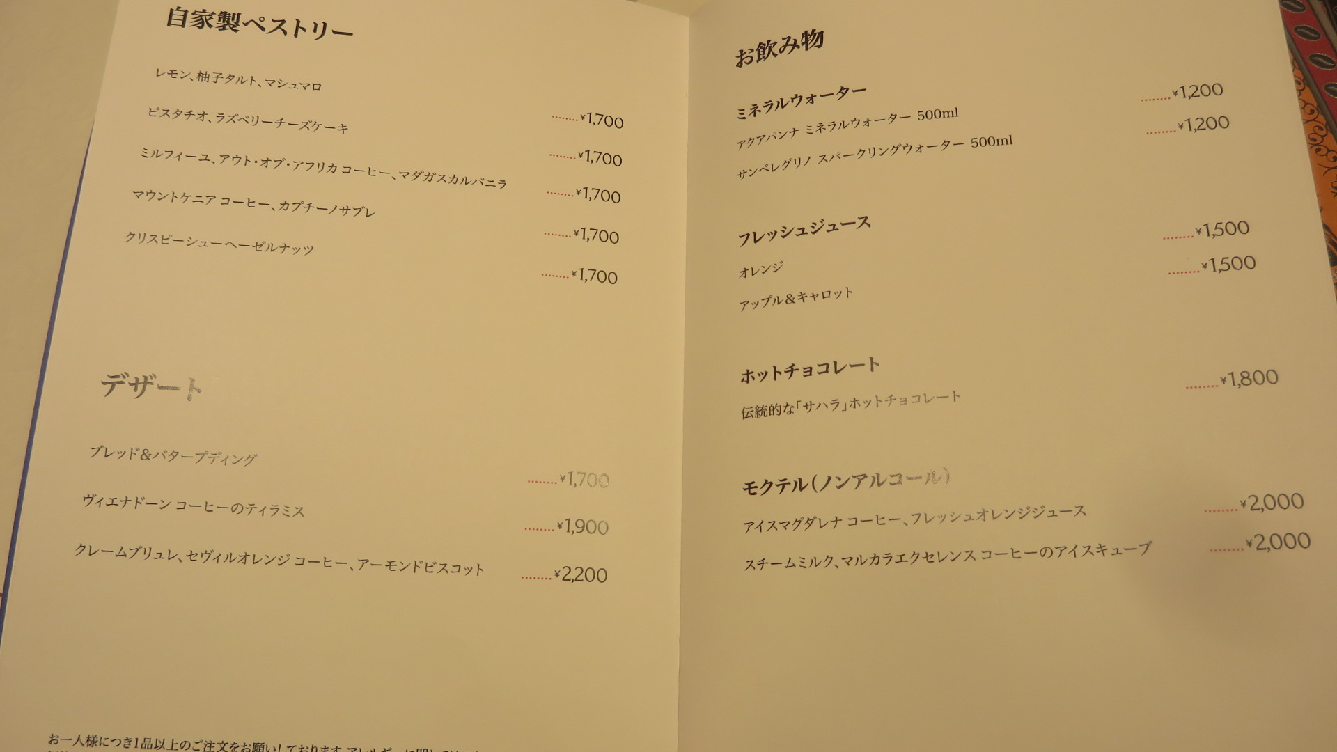 フードメニューに、アフタヌーンコーヒーメニュー。
