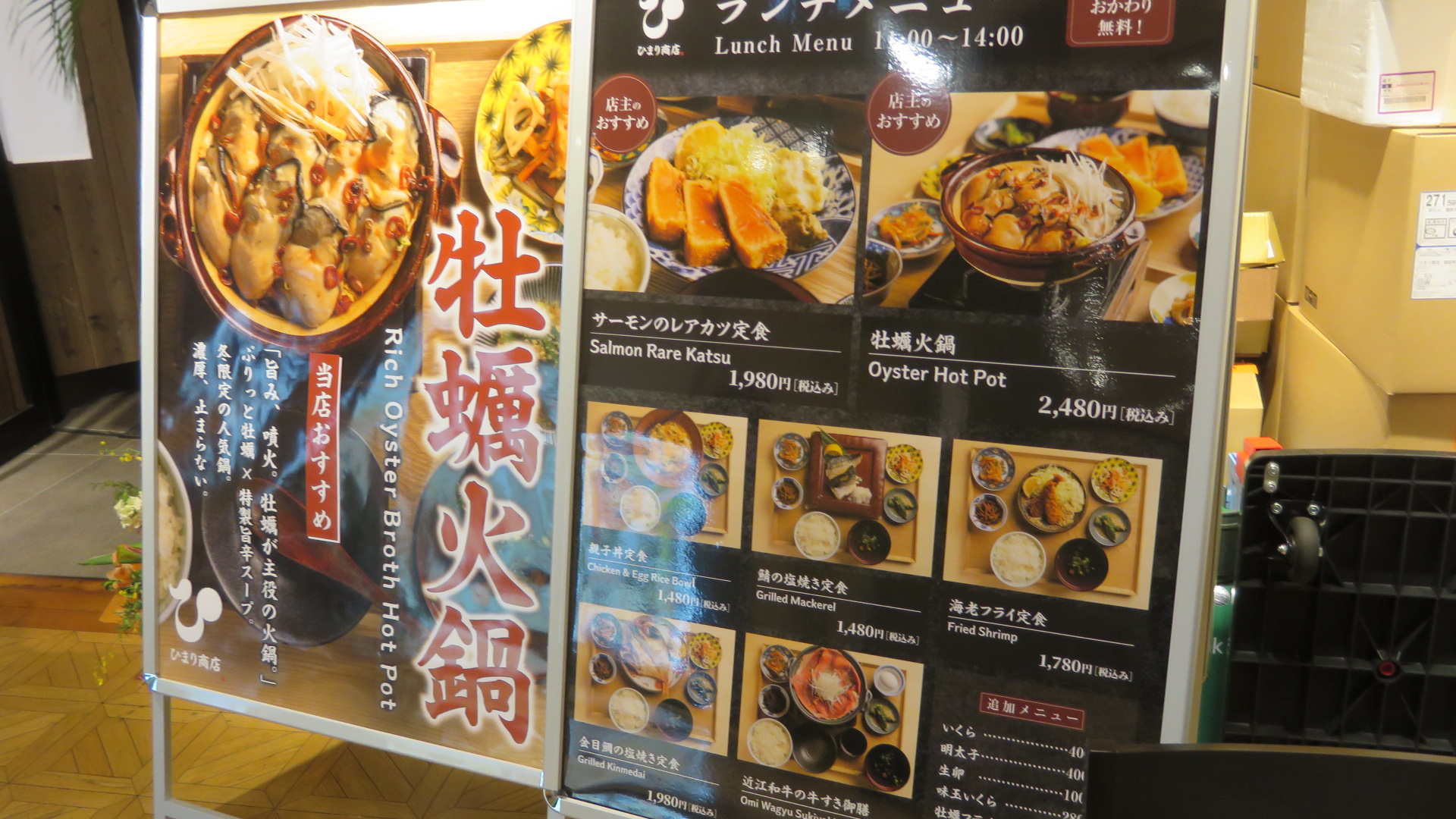 居酒屋ランチらしく、魚介にお肉とバラエティー豊かですが、”火鍋牡蠣”がやたら目につきます。押しのようですね。