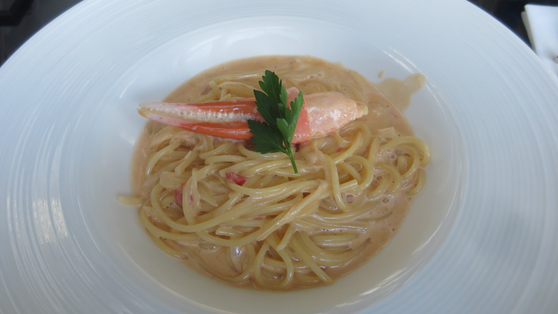 そして、パスタの蟹のトマトクリーム。まぁまぁおいしい。