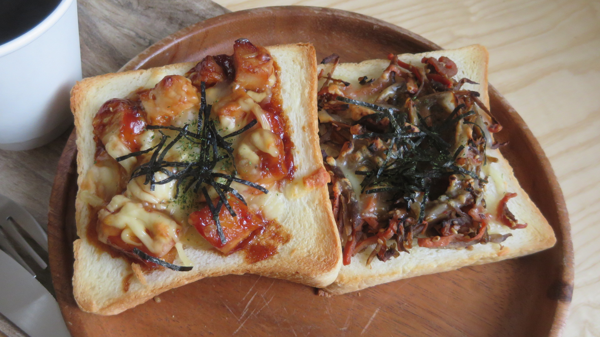 ■照り焼きチキン 550円、きんぴらチーズ 450円、ブレンドコーヒー 680円