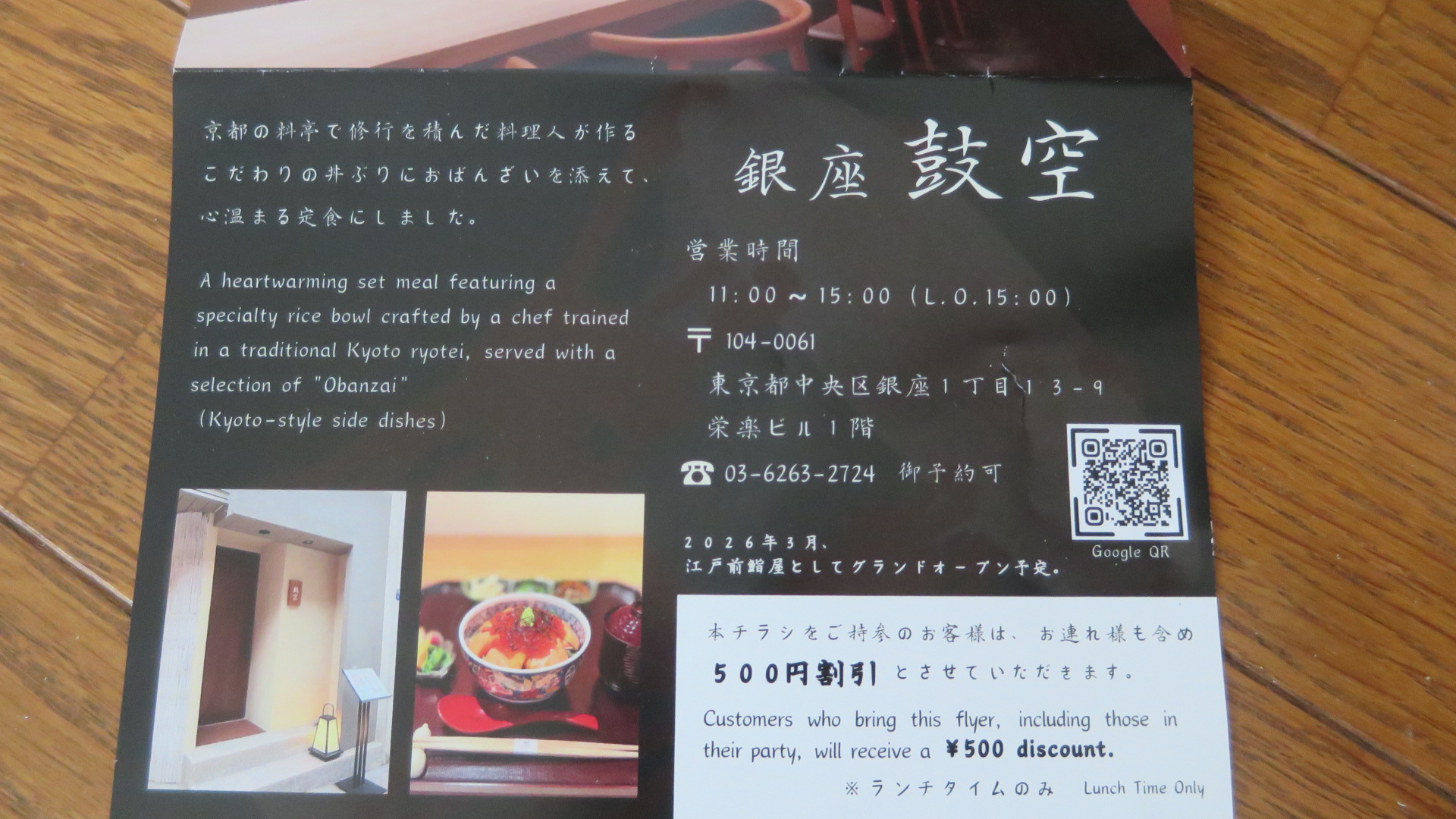 次回ランチに利用できる500円引きのチラシをいただけます。