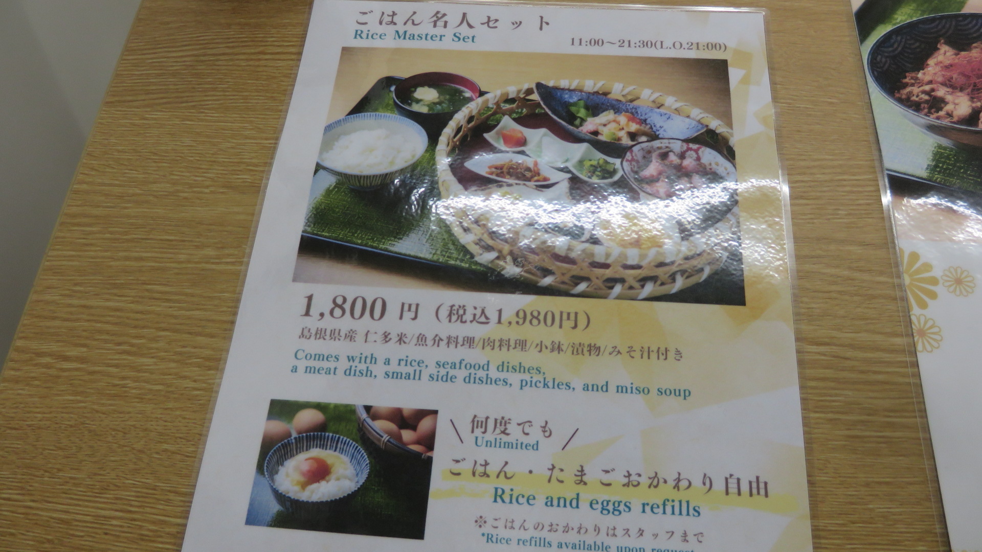 なので、この割引きがあれば、どのメニューも妥当なお値段になりますね。とにかく、ご飯とたまごでおいしくいただく、和食のお店でした。