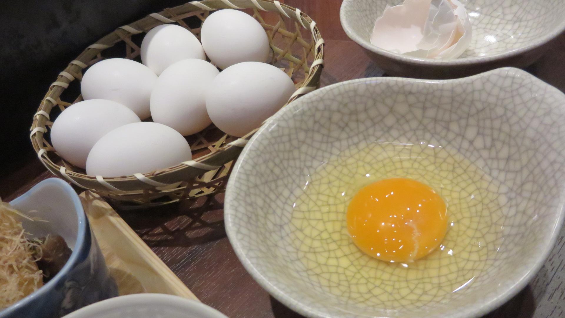 羽釜で炊いたおいしいごはんに、たまごをかけれてTKGにすれば、いくらでも食べられそう。