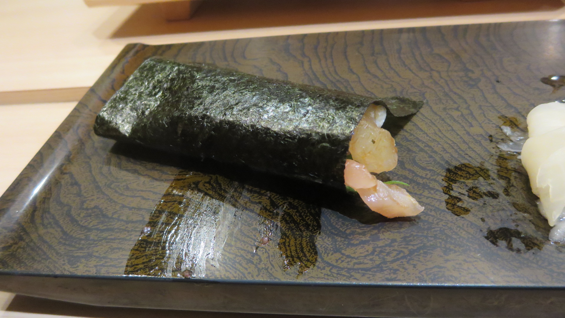 シャリのにぎりがややゆるめなときがあったりしましたが、十分許容範囲で、よく訓練されておられると思いました。