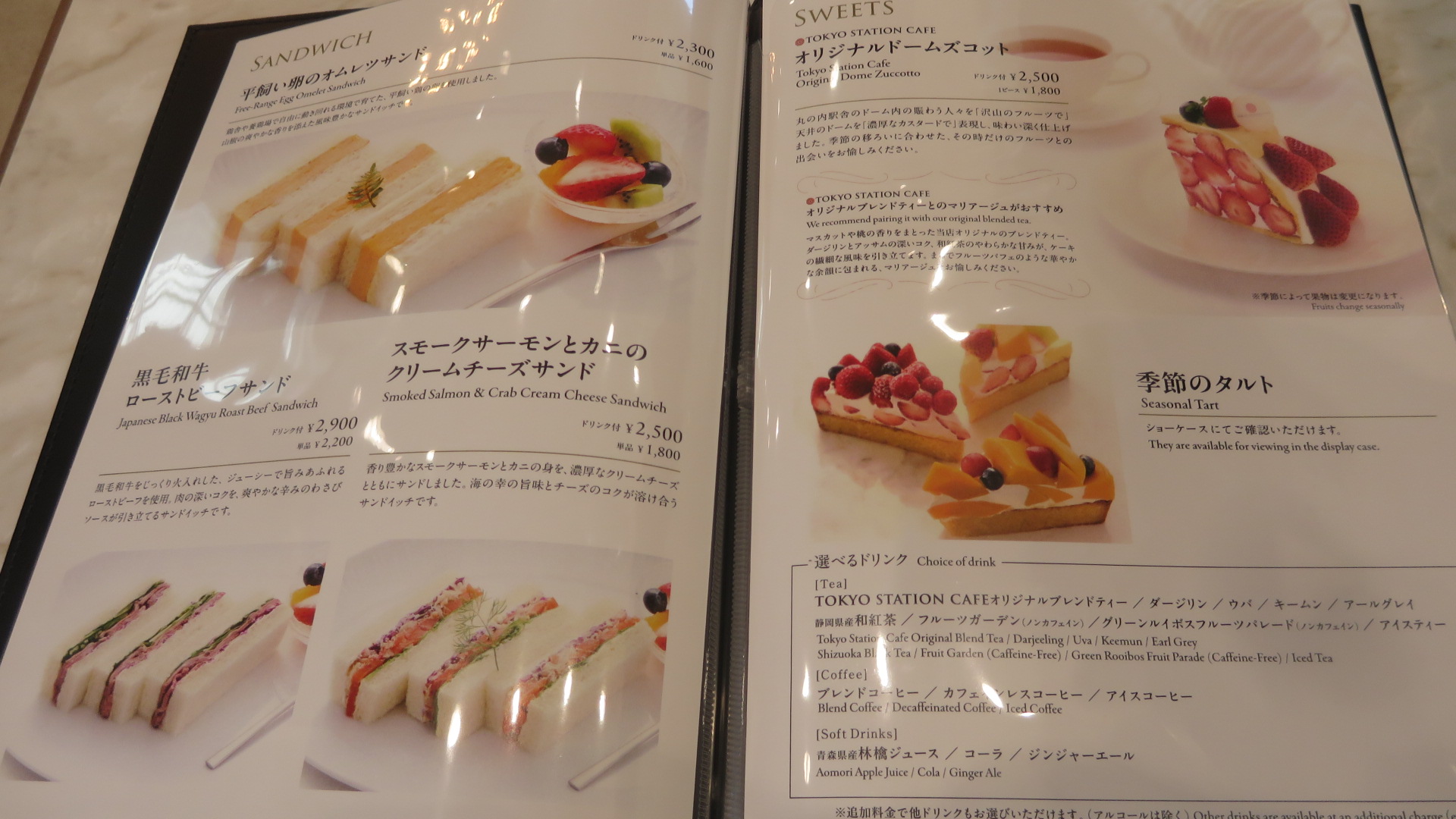 終日注文できるメニューは、サンドイッチやスイーツ、カフェ。