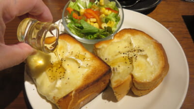 記事へ⇒『銀座 珈琲館@インズ たっぷりチーズのクアトロフォルマッジサンド | モーニングセット トースト&スクランブル』