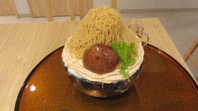 氷は、日光の天然氷。季節のモンブランかき氷には、笠間の和栗を使用しています。