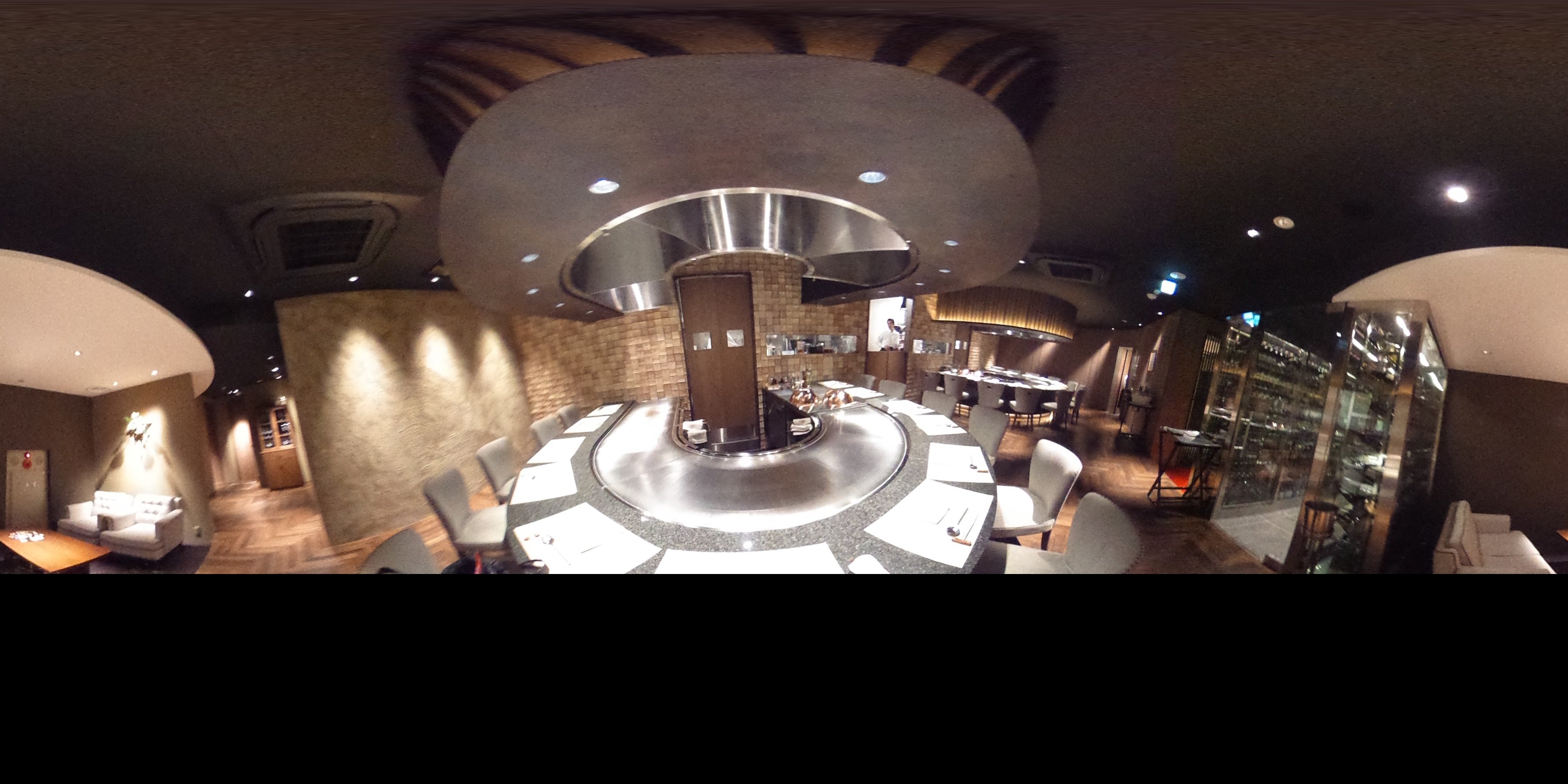 後ろには、ワインセラーが見られます。ステーキには、やっぱり赤ワインが合いそうですね。