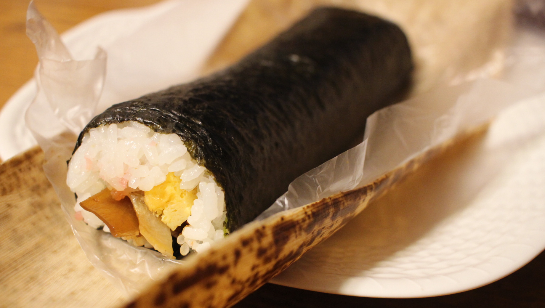 恵方巻は、竹皮に包まれてのお持ち帰り。