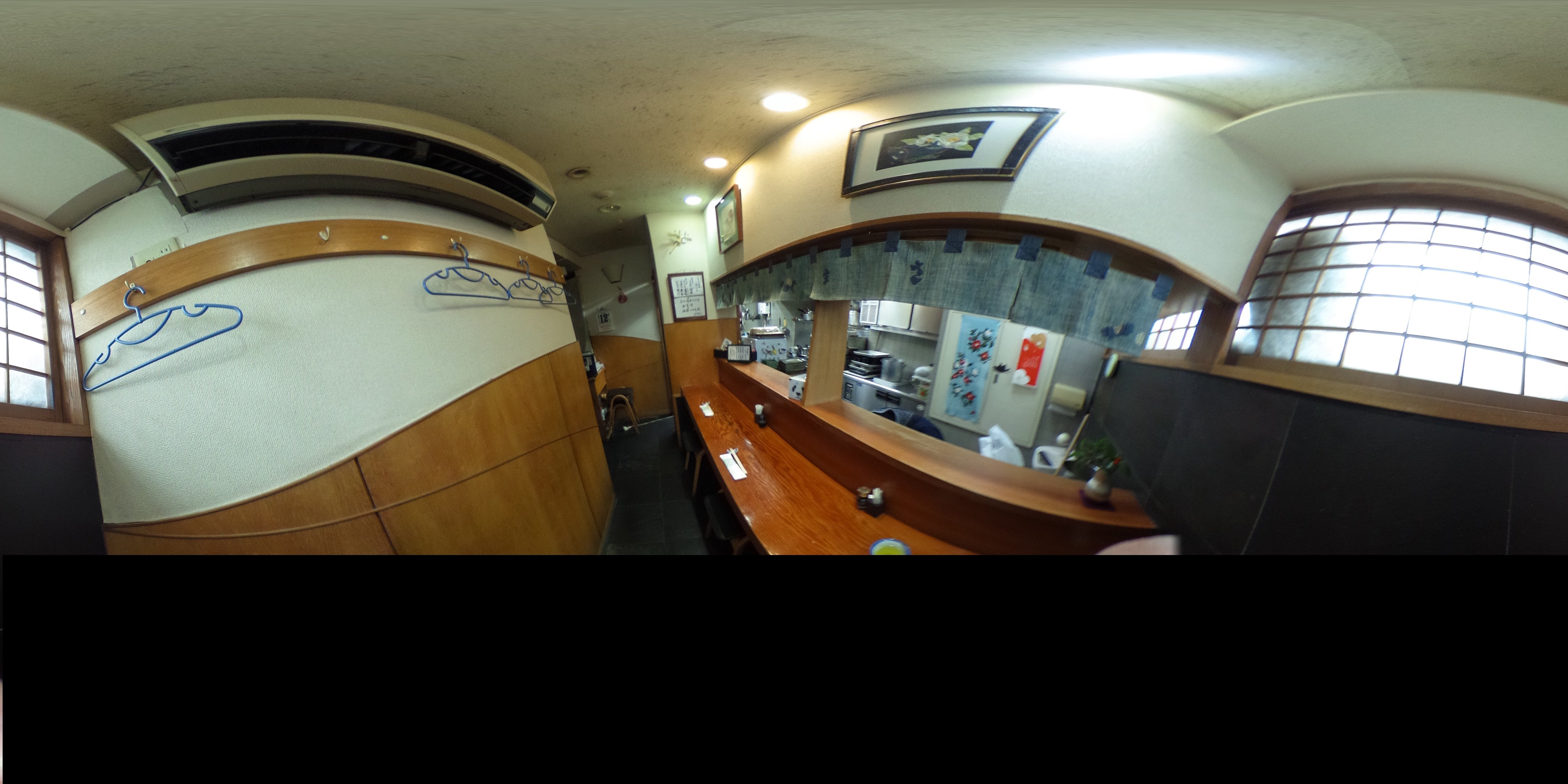 今日は、半地下のカウンターで。たった4席の手狭な店内。