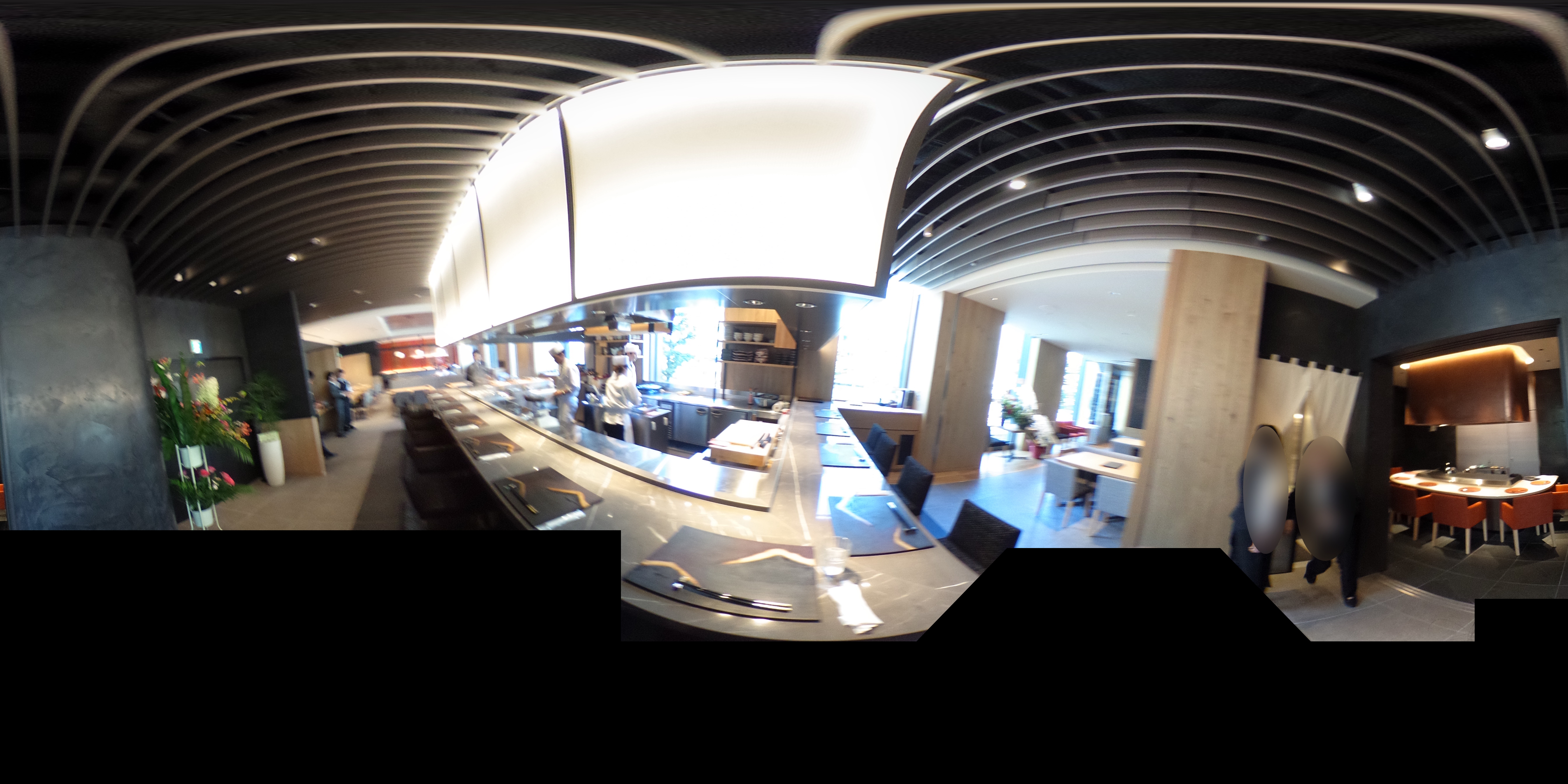 入口側は、オープンキッチンを囲んでカウンター席。