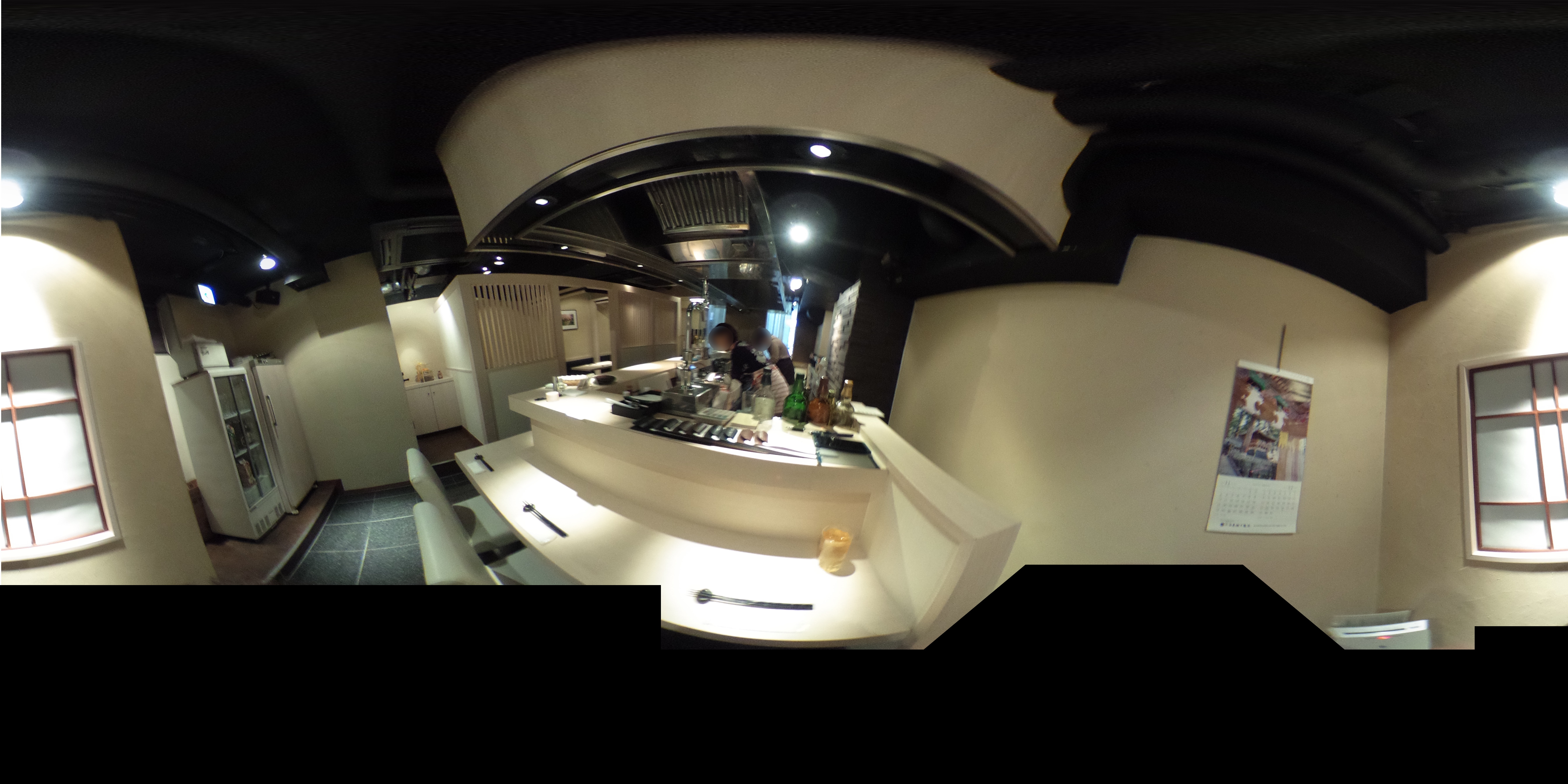 L字型のカウンター席に、人数多めのお客さんには、半個室のテーブル席があてがわれます。